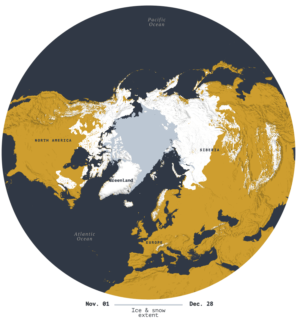 Contrary to popular belief, it’s not that common to see snow in New York City in November, or at least not in recent years. This year we had snowflakes very early on and a couple of full snowfalls well into December. Two years ago we also had reports of possible snow in November, and that’s why I decided to create (these animations showing the dance of snow) at the North Pole back then.